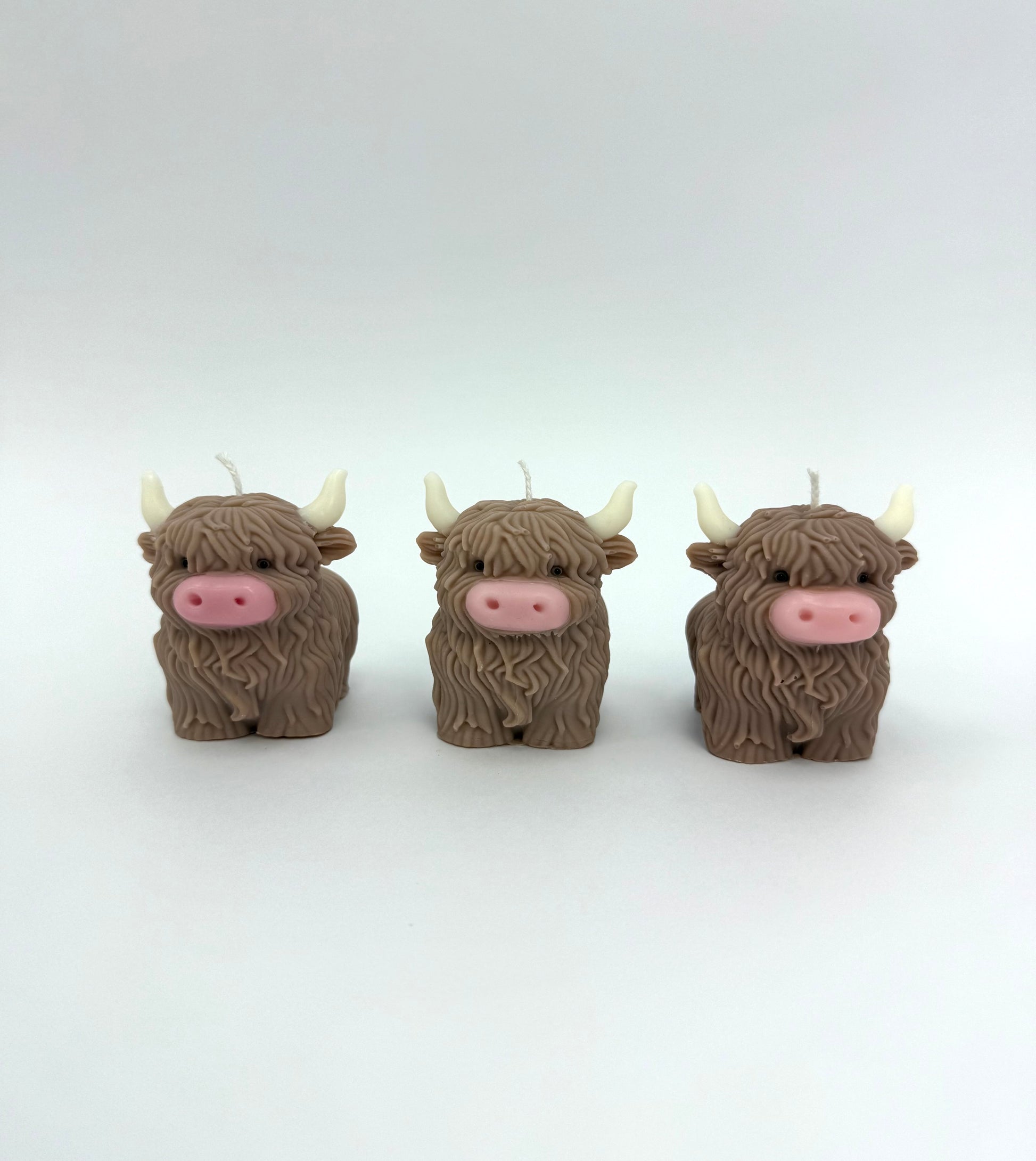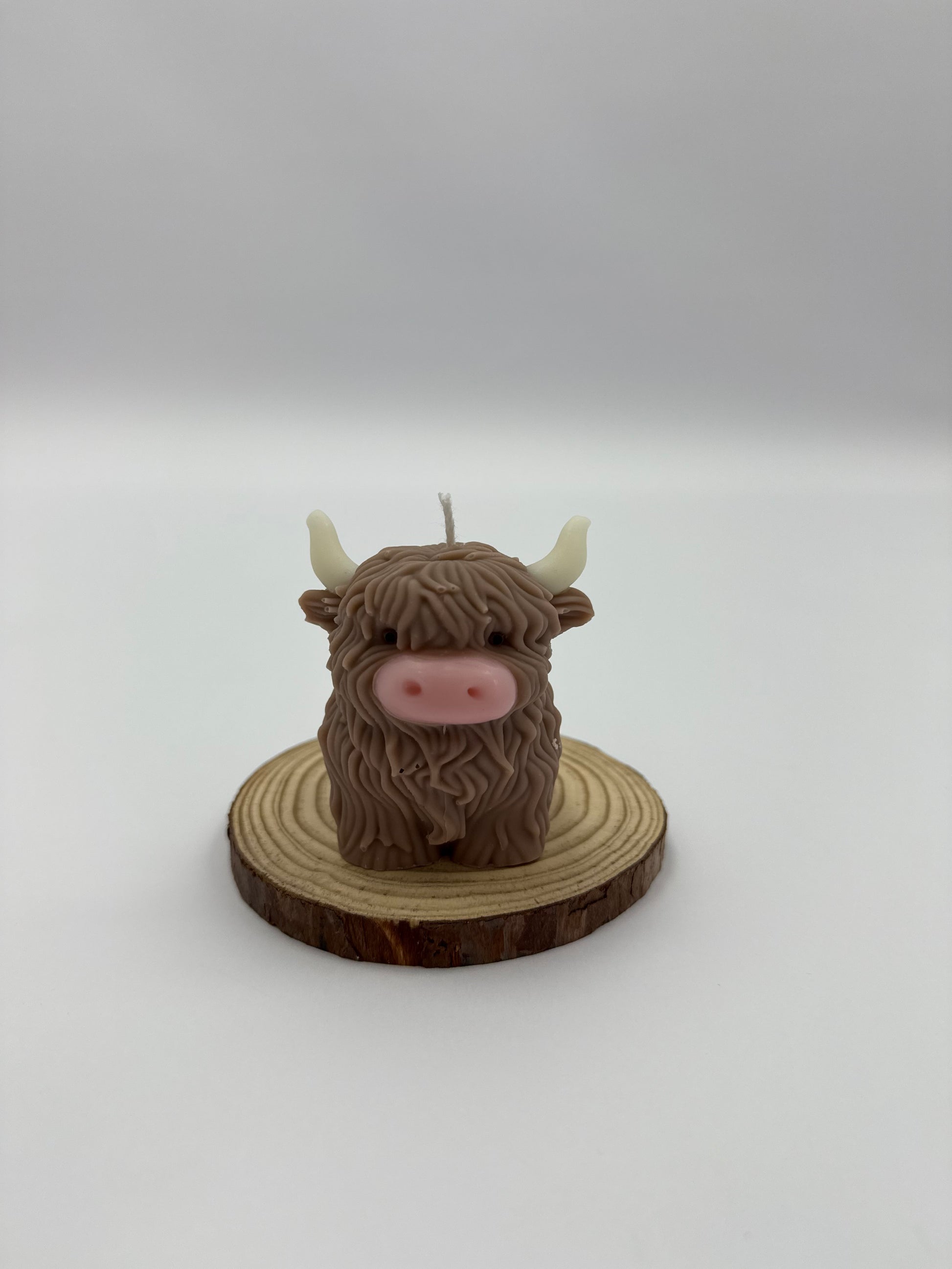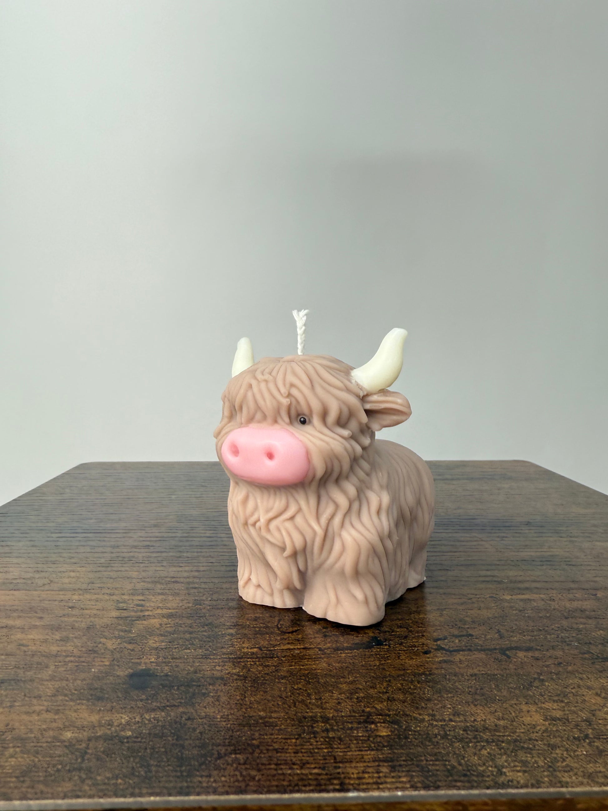 Brown HighLand Cow Candle With White Horns and Pink nose